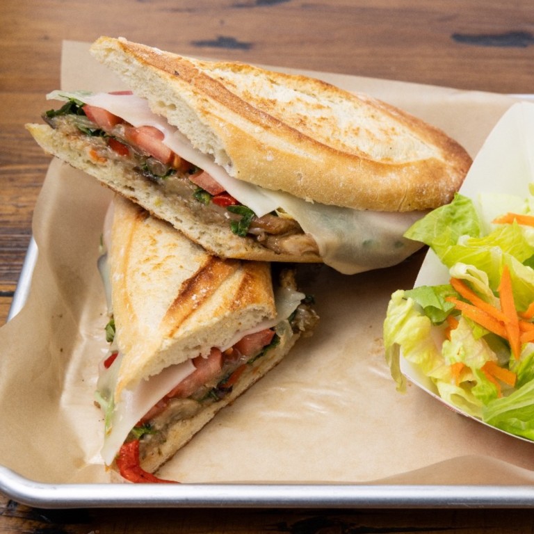Grilled eggplant marinated in rich olive oil, Balsamic vinaigrette, and fragrant garlic is complemented by sun-dried tomatoes, fresh arugula, zesty giardiniera, and mozzarella.
