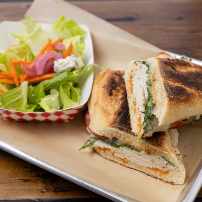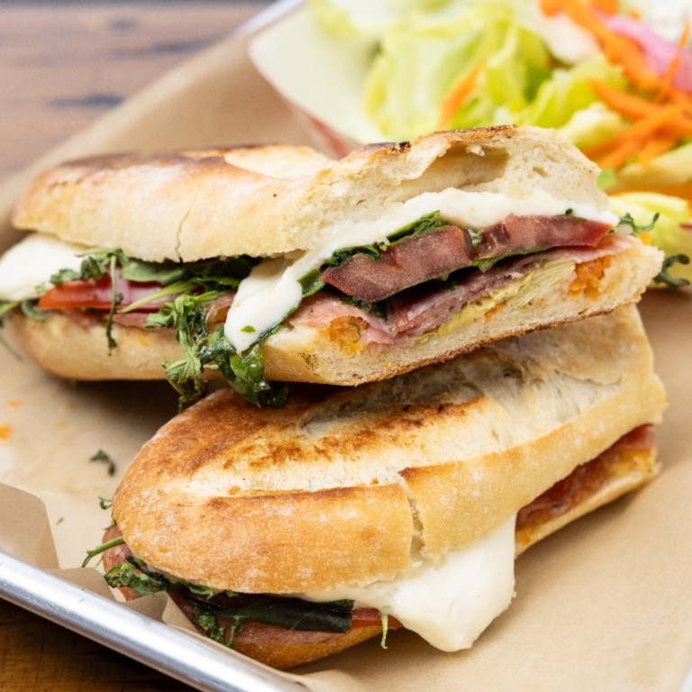 Delightful combination of roasted turkey, zesty Spicy soppressata, creamy mozzarella, crisp giardiniera, aromatic sundried tomato pesto, and peppery fresh arugula.
