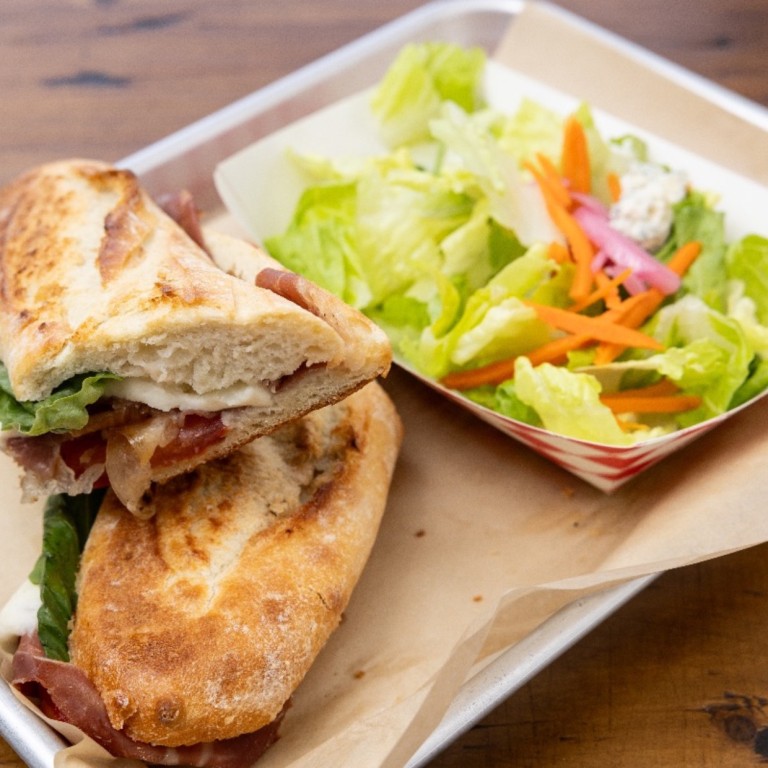 Treat yourself to the irresistible combination of browned chicken, savory salami, sun-dried tomatoes, provolone cheese, zesty giardiniera, fresh tomatoes, and vibrant arugula, all served on toasted ciabatta. Don't miss out on this flavor-packed delight!